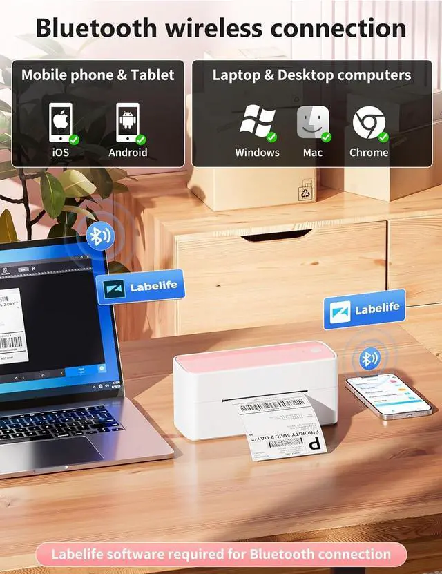 [Various Platforms Compatibility] - This shipping label printer can support the width of 1 - 4.6 inches labels, which is widely used to print labels from major sales and shipping platforms, such as eBay, Shopify,, Etsy, Poshmark, UPS, USPS, FedEx, ShipStation, DHL, Shippo.