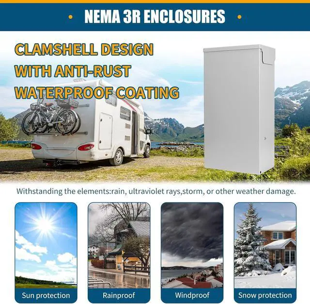 LOCKABLE RV OUTLET BOXOur temporary power outlet panel is lockable with a hole, offering security whether it's installed at home, a campsite, or a public charging station.