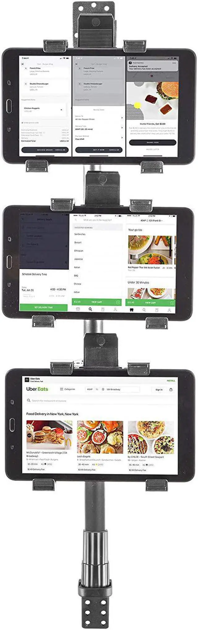 ADJUSTABLE - Each tablet holder rotates 360 degrees for optimal viewing positions. Tablets and the pole can be mounted in a vertical or horizontal position. Insert Tablet into holders horizontally and then rotate to desired viewing position. Clamps your tablet in a secure hold, but is easy to remove as needed.