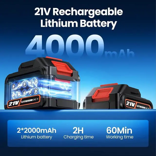 Battery: The small handheld chainsaw takes about 2 hours to charge and can work for 30 minutes with a single battery. It comes with 2 pcs 21V 2000mAh rechargeable batteries. Say goodbye to struggling with electrical cords and make your garden art easier. Our mini chainsaw is compatible with Makita batteries.