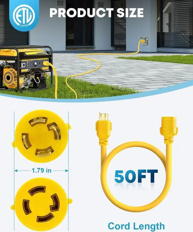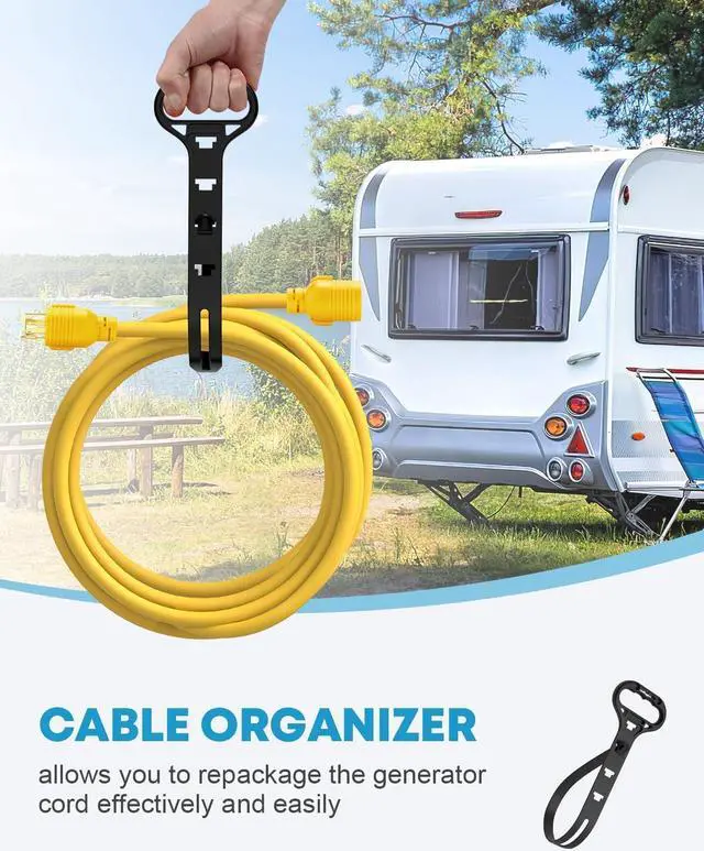 50FT Portable Generator CordComes with a cable organizer for you to storage the cable flexible & effrctively, and you could extend it up to 10ft away to protect yourself & others from standing too close to the hazardous exhaust.