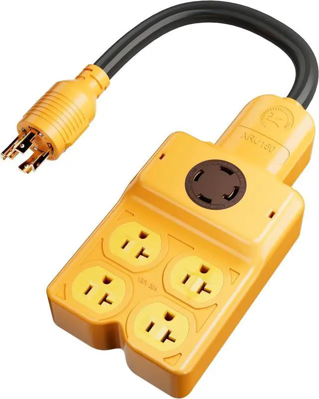 Generator Adapter: - 4-Prong 30A Generator Extension Cord to 4X Household Outlets designed specifically for emergency portable generators for everyday 110V electrical appliance