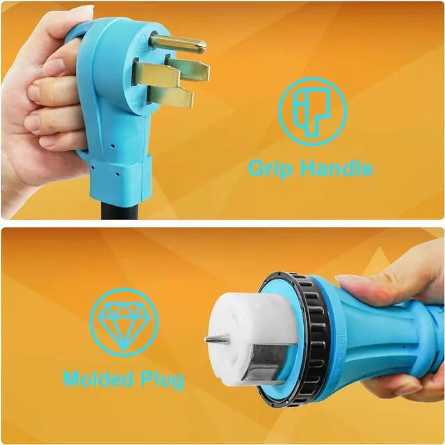 Male end of cord is designed with ergonomic grip handles