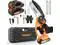 CHAINS: This cordless small chainsaw is equipped with 2pcs 21V 2000mAh rechargeable batteries, which provide overload and temperature protection and longer battery life. And 2pcs high-quality guide chain has undergone a deep quenching process to ensure smoother cutting and more wear resistance