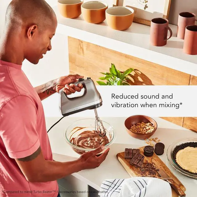 When you're finished mixing, you can securely store your accessories with the integrated storage clip that attaches to the underside of your mixer, eliminating the need for bulky containers and/or storage boxes. *Compared to metal Turbo Beater II accessories based on cake batter.