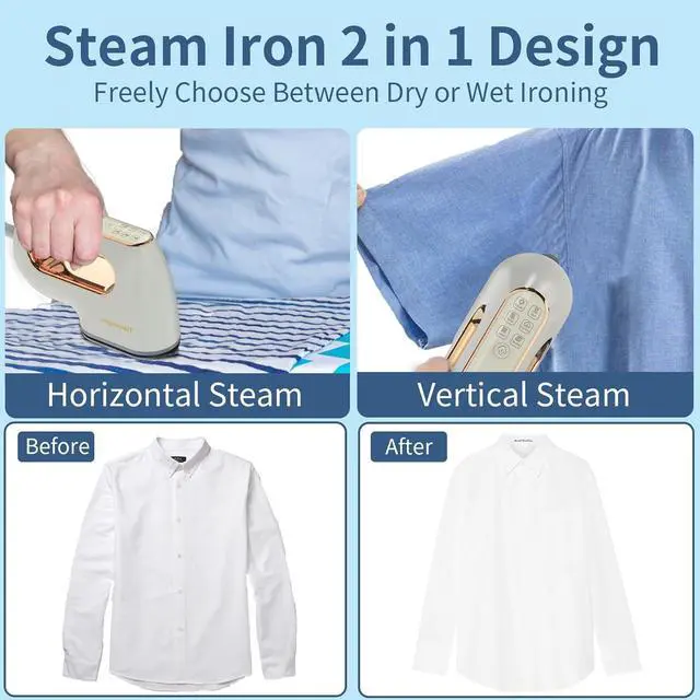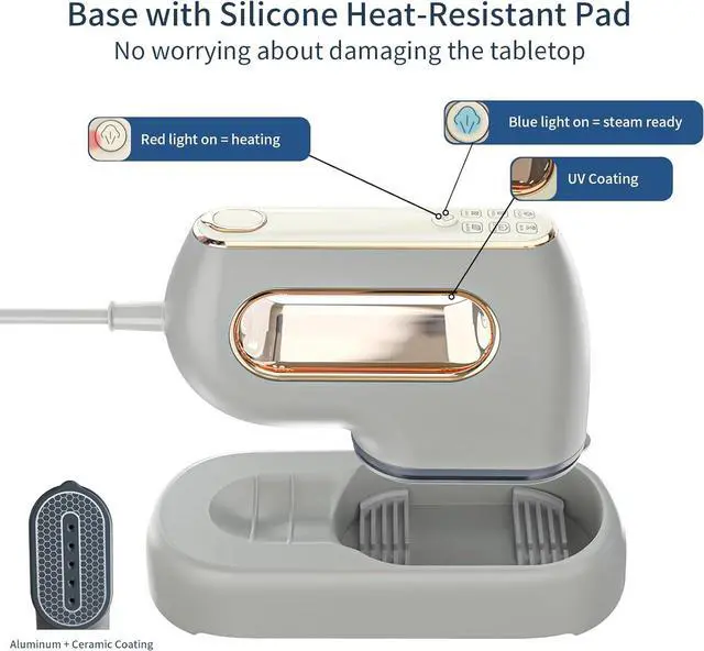 : Easily navigate 6 fabric settings (nylon, silk, wool, cotton, linen, and blends) using the touchable LED panel. Each setting adjusts to the perfect temperature. The silicone anti-scalding base ensures safe placement after use