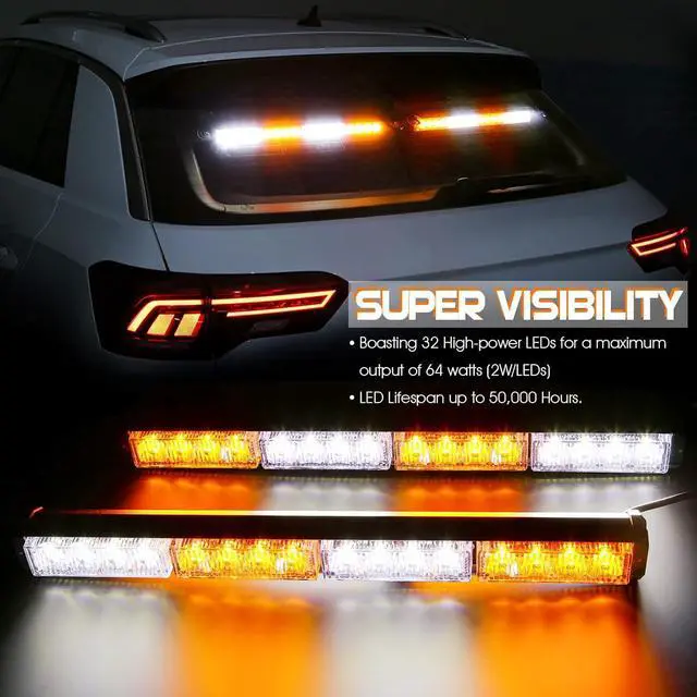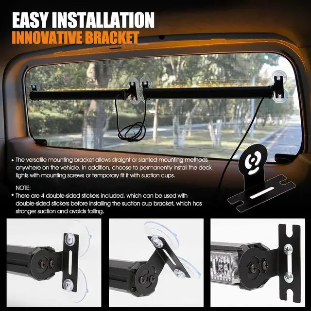 EASY INSTALLATION -- Each emergency dash light bar has 4 strong and stable suction cup brackets are firmly installed on the smooth windshield to prevent the warning light from falling off during driving.