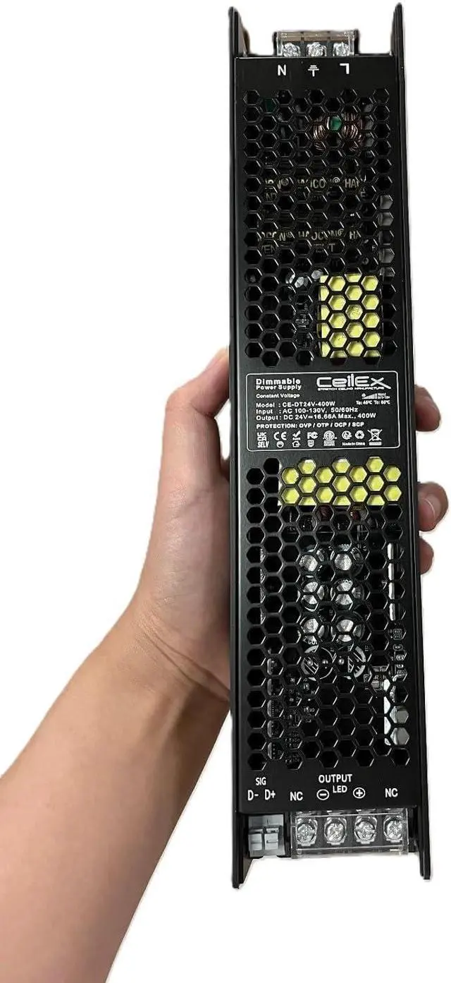 The CEILEX Triac Dimmable LED Driver is a versatile 24V, 400W power supply designed for LED lights. It features IP20 protection and ETL listing, ensuring safety and reliability. Compatible with Lutron and Leviton dimmers, it supports multiple dimming methods, including Triac, 0-10V, 1-10V, potentiometer, and 10V PWM. Ideal for precise control and seamless integration in various lighting setups.