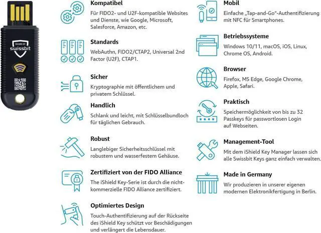 Cutting Edge Security Standards: FIDO2 (public and private key cryptography), Passwordless and HOTP (Event), TOTP (time-based), Smartcard (PIV-compatible), OpenSC-compatible