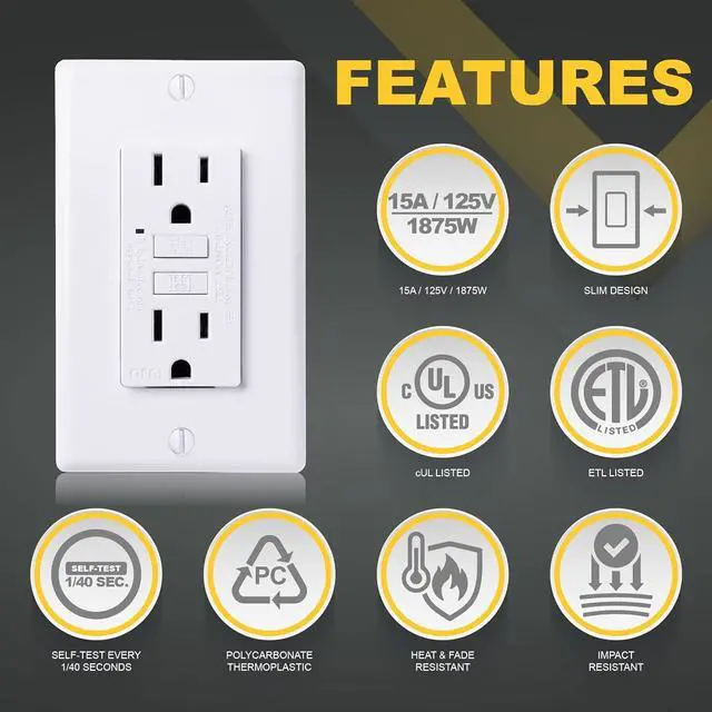 Amp GFCI Outlet: To ensure continuous protection against ground faults, the GFCI outlet conducts automatic self-tests. Install in your bathroom, kitchen, garage, and basement.