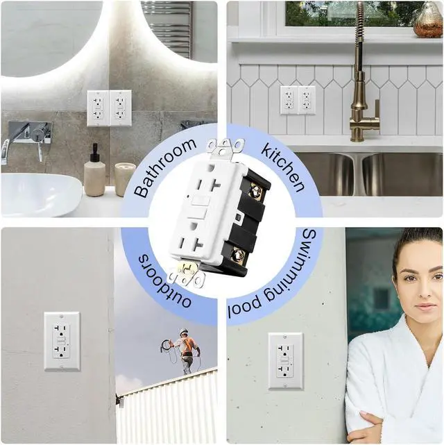 20 Amp GFCI Outlets, Tamper Resistant GFI Receptacles with Wallplate, UL Listed, White