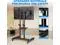 STABILITY AND MOVEMENT: This rolling TV stand is supported by 4 heavy-duty 360° rotating casters. 2 pieces of locking wheels in the front make it stationary or mobile at your will. You can quickly move your monitor or tv around your home or office. This portable tv stand on wheels is an excellent choice for video conferences or presentations at trade shows, businesses, classrooms, PC gaming, hotels, shopping malls, entertainment centres, etc.