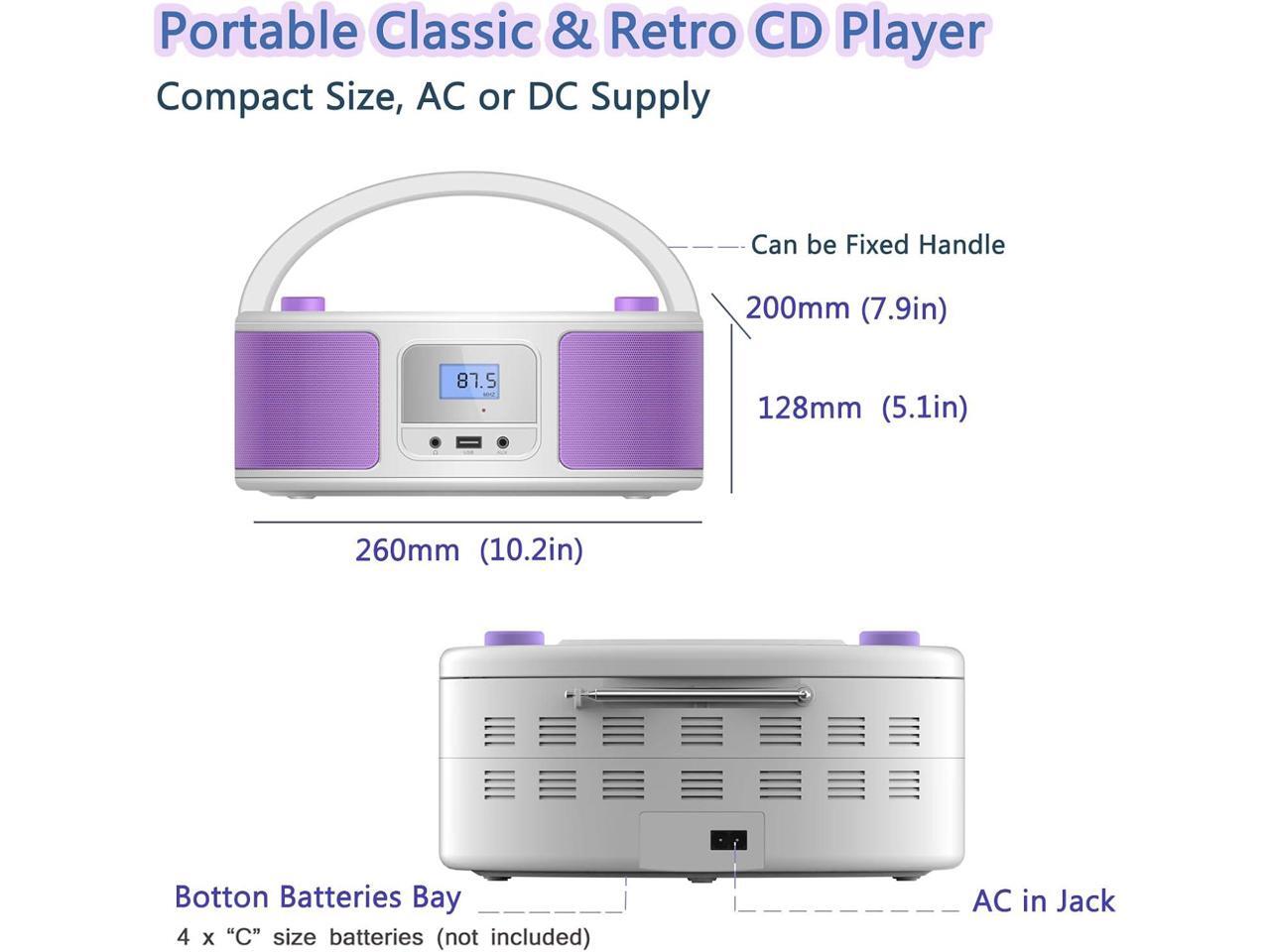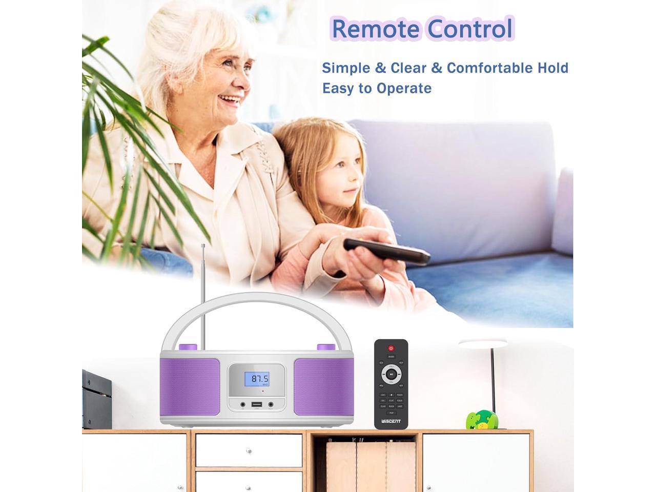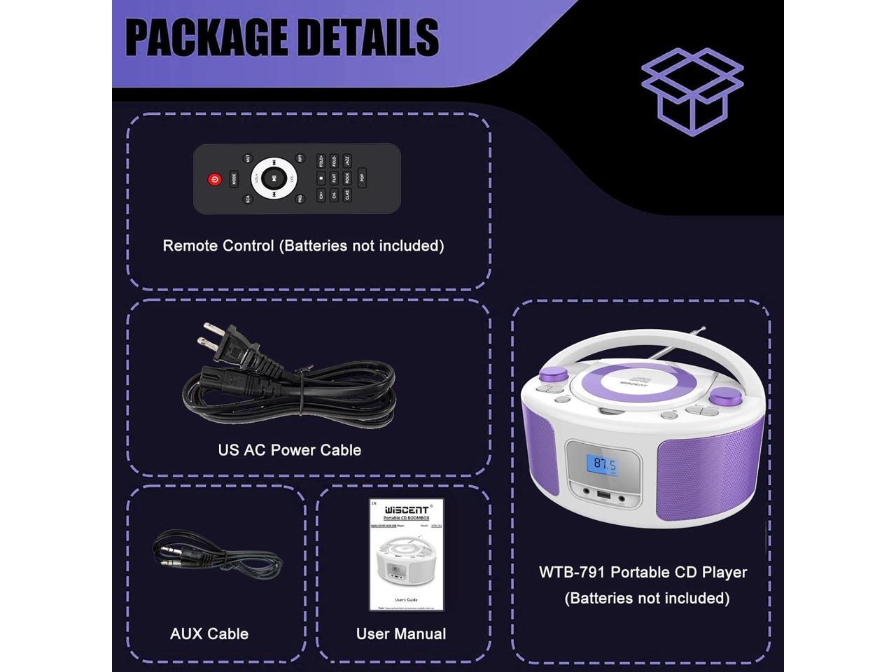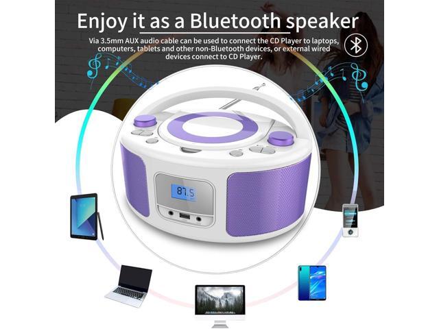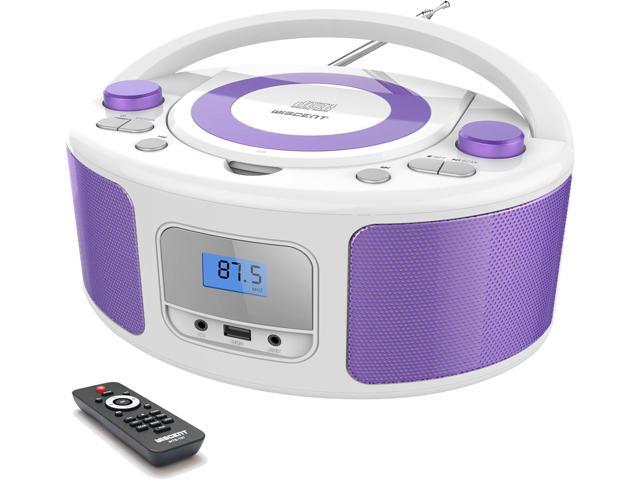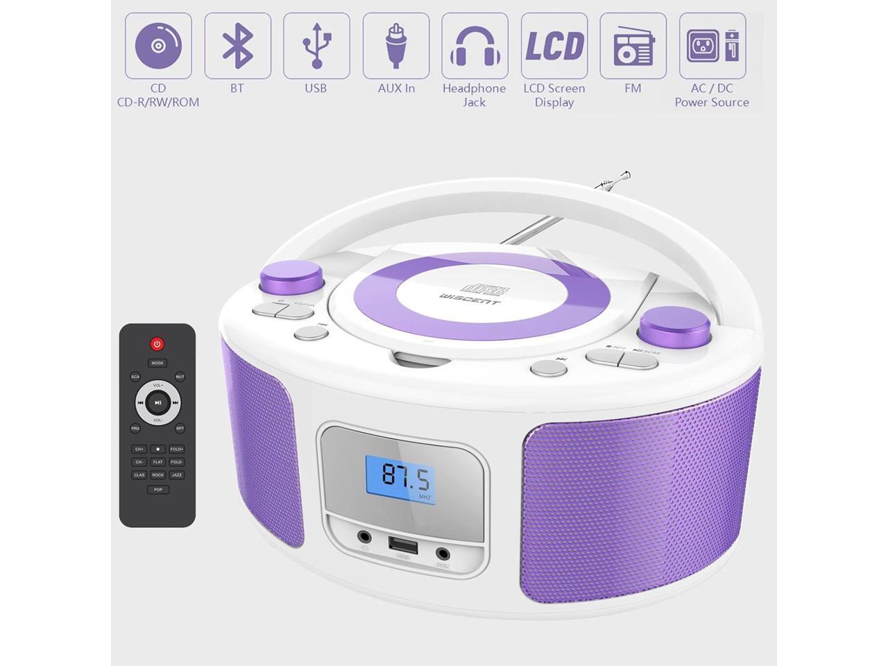 CD Radio Portable CD Player Boombox with Bluetooth,FM Radio,Remote Control,USB Input and 3.5mm AUX Headphone Jack,CD-R/CD-RW/MP3/WMA Playback,AC/Battery Powered(WTB-791Purple)