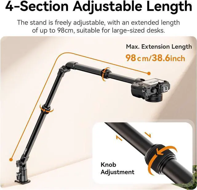 Load Capacity up to 2KG: Crafted from durable aluminum alloy, the mount offers a high load capacity for devices up to 2kg/ 4.4 lb