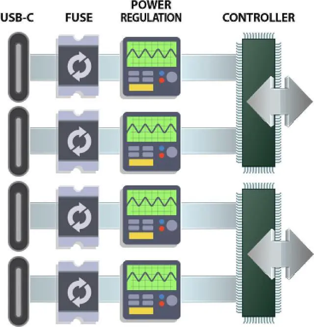 Protected Power Delivery Independent per-port power regulation isolates each port to prevent cross-coupled power glitches that may cause accidental disconnects Mac, Windows 11+, and Linux Compatible