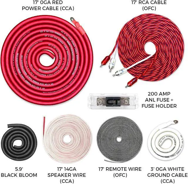 • 17 FT - 1/0 Gauge CCA Power Wire (Red) & 3 FT - 1/0 Gauge CCA Ground Wire (White)
