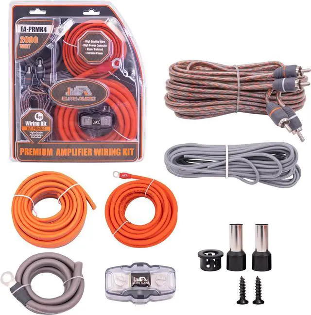 Introducing our high-performance amplifier installation kit designed to deliver an exceptional audio experience in your vehicle with a maximum power handling of 3600W. The kit includes an orange soft touch Copper Clad Aluminum (CCA) power and ground wire, combining flexibility with cost-effectiveness for a seamless installation process. The 2-ch triple shielded twisted pair RCA interconnects ensure pristine signal transmission between your head unit and amplifier, minimizing interference and preserving audio clarity. Our 12GA orange/grey speaker wire and 16GA grey remote wire provide versatile connections for your speakers and remote turn-on functionality, catering to a wide range of audio setups. For added safety and protection, we've included a high current capacity mini-ANL fuse holder with an 80-amp fuse, safeguarding your amplifier and electrical system from potential overcurrent situations. The kit also comes with premium ring terminals and copper ferrules, ensuring secure and reliable connections for optimal performance. Elevate your car audio system with this comprehensive amplifier installation kit, offering unparalleled features and benefits at an unbeatable value.