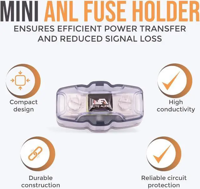 SAFETY FIRST: We prioritize your safety with a high current capacity Mini ANL Fuse Holder equipped with a 80-Amp Fuse. This ensures your amplifier and vehicle's electrical system remain protected from electrical faults and overcurrent situations.