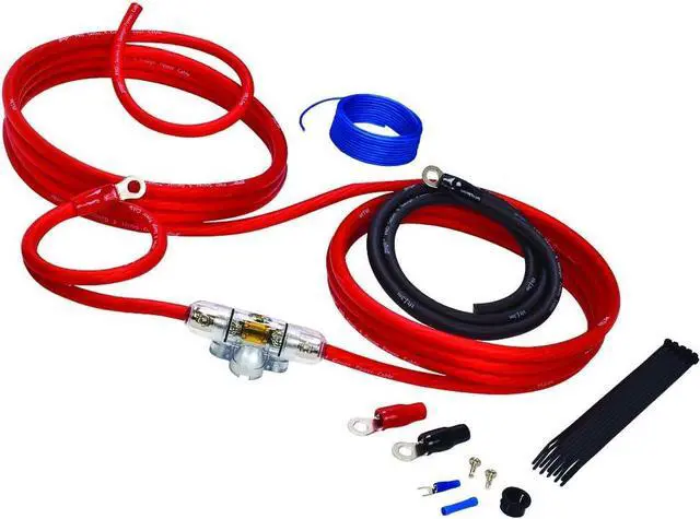 This Stinger 4 AWG 4000 Series Power Amplifier Wiring Kit includes all the necessary hardware and wire to power one amplifier and is designed specifically for car audio systems up to 1500 watts. The included premium power/ground cable is made from 100% oxygen-free copper and is true-to-gauge for ultimate power transfer. This SK4241 power amp kit includes 17-feet of 4 AWG translucent red power cable, 3-feet of 4 AWG translucent black ground cable, 17-feet of 18 AWG blue remote turn-on wire, Mini-ANL Fuse holder, 150 Amp Mini-ANL style fuse and more.