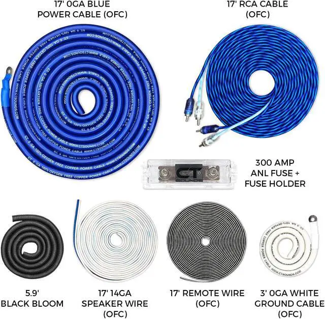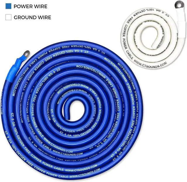 • 17 FT - 1/0 Gauge OFC Power Wire (Blue) & 3 FT - 1/0 Gauge OFC Ground Wire (White)