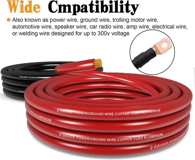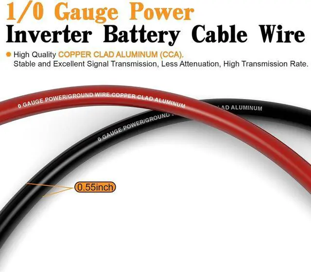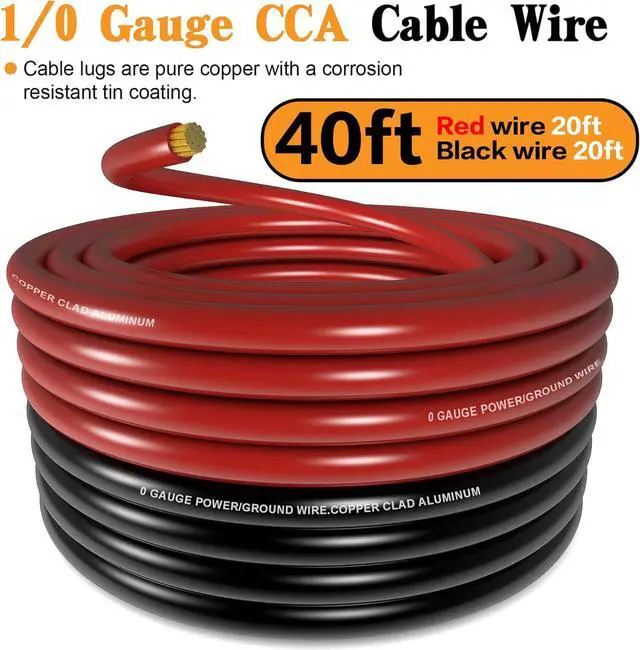 40FT 1/0 Gauge Wire Copper Clad Aluminum CCA (20ft Each for Black and Red),
