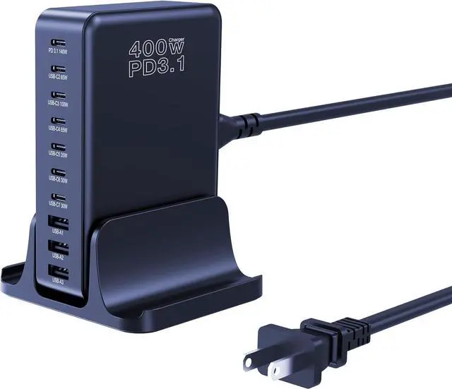 Advanced GaN³ Tech: CHIPOFY 400W usb c charging block is adopted GaN III generation chip technology and built-in multi-protection system and premium microchips, which makes it smaller in size, generate more efficient charging power, produce less heat, and tolerate higher current compared to previous generation GaN approaches, to keep you and your devices safe