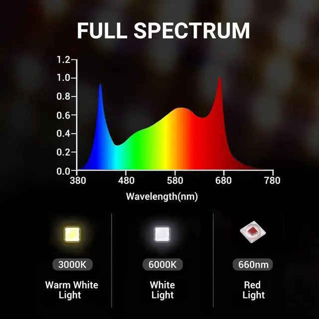 Durable Grow Lights: Sunflower aluminum heatsink enable the bulb to dissipation heat faster and work stable. The three-proof paint protection layer on the surface of the lamp bead firmly isolates dust and sulfide, as well as water and oxidation invasion, and the solder joint position has a silicone curing waterproof effect.