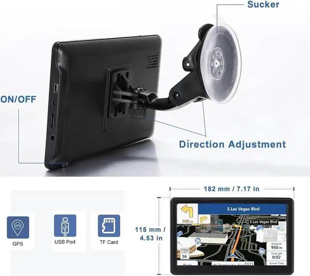 SUPPORTS 7 VEHICLE MODES The GPS navigation is suitable for car, truck, bus, taxi, bicycle, emergency and pedestrian. When driving the vehicle, you will benefit from the information of length, width, height, weight and other data. With a suction cup and back clip, you are able to easily fix the truck GPS to the windshield or dashboard. It makes driving more comfortable.