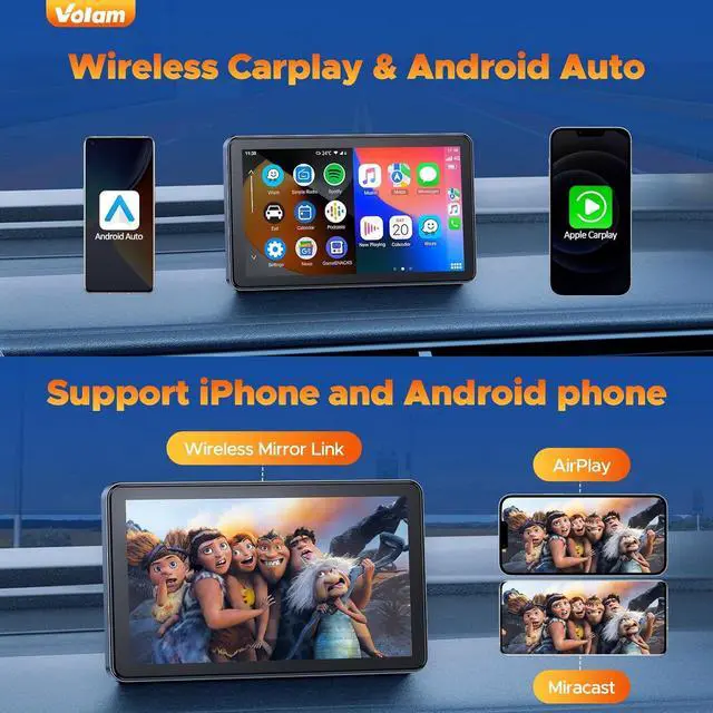 Vehicle Compatible Carplay Screen for Car comes with a 360-degree rotatable suction cup mount that can be fixed to your dashboard console or windshield, and can be easily removed and stored. It is powered by a 12-36V cigarette lighter, suitable for almost all types of cars, trucks, SUVs, vans, trailers, hunting vehicles, etc