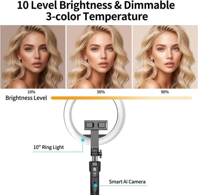 yAyusi Auto Face Tracking Tripod 360° Rotation with 10" Ring Light
