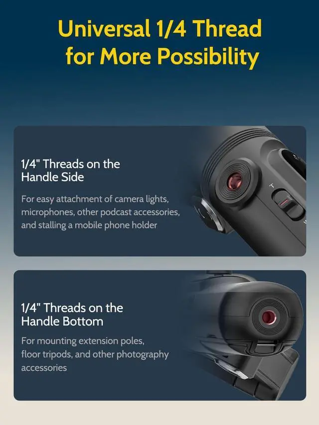 [Smart 7.0 Anti-Shake] The phone gimbal features advanced anti-shake technology for exceptional stabilization with 3 powerful brushless motors, ensuring the films remain steady and smooth for high-quality videos. Incept as an anti-shake smartphone gimbal, it's also a portable phone tripod and selfie stick for vlogging, sporting, traveling and more.