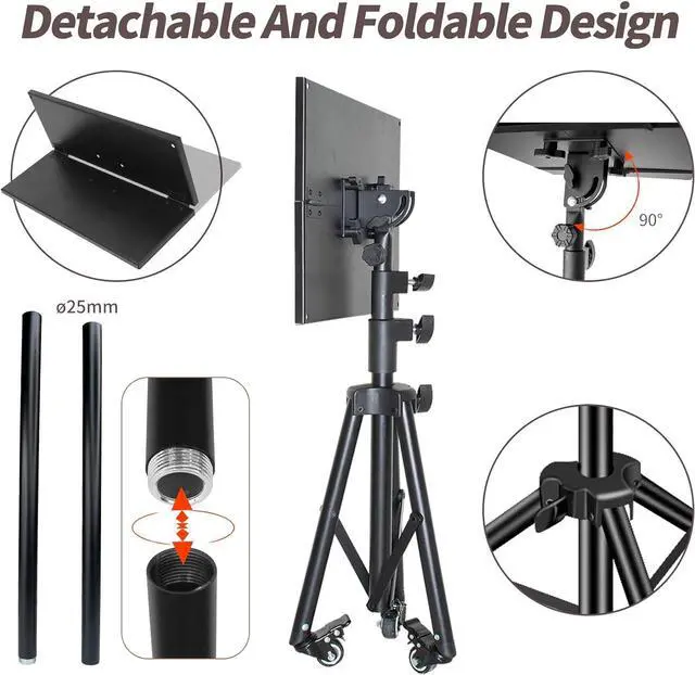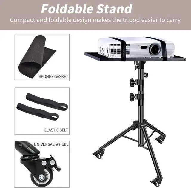 Foldable DesignThe projector stand use collapsible design(makes a short, compact size, computer stand is lightweight, package include bag, folds completely for easy transportation