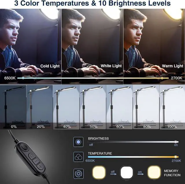 Versatile Desk Lamp for Home Office: Combining style and functionality, this desk ring light enhances your video conferencing, Zoom meetings, and video calls by brightening your image presentations. It's ideal for remote work, office setups, study areas, video recording, live streaming, makeup, selfie, Instagram, logging, gaming and any scenario requiring enhanced lighting. Committed to delivering the best zoom lighting, we offer a 3-year after-sales service for your peace of mind.