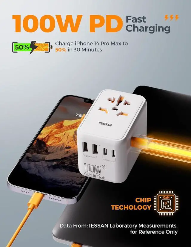 Safety Protection: The international power adapter with double fuse effectively protect your devices, featuring dynamic temperature sensors allows your mobile phone to charge for 10 hours without getting hot;