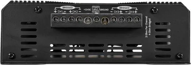 2 Channel Bridged double the power output to your speakers by bridging two channels. Minimum impedance of 4 Ohms per bridged channel at output power of 2 x 450 Watts RMS.