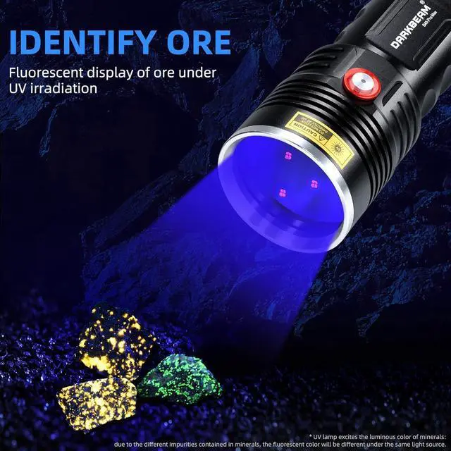 OUR MOST POWERFUL ULTRAVIOLET LIGHT-- The 365 uv light on the market might be limited to a single light source, and the beam cannot reach farther (ensuring high intensity at the same time). Our 36W high-power spot-light ultraviolet flashlight comes with 3 P50 LED four-core light sources originating. The three times intensity uv light makes it easier to search mineral rocks even during the day. Also perfect for leak detection, hidden cracks check, uranium glass lighting.