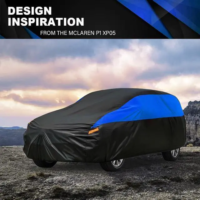 Unique design1. 4pcs reflective stripes remind other people in the night, avoid accident in dark environment 2. The elastic hem at the bottom makes the car cover fit the car better 3. Windproof straps can prevent the cover from being blown away by the heavy wind 4. Double stitch technology, it make the fabric stitched tighter, more durable than most similar covers.