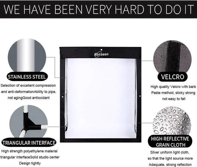 The Konseen photo studio is the perfect solution for taking commercial photos with a professional result. Designed for users of any skill level, our detailed Instructions makes it easy to adjust your camera and create high quality photos quickly and effortlessly