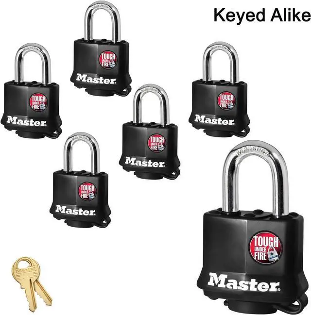 Master Lock - (6) Keyed Alike Padlocks w/ Thermoplastic Coating - 311KA-6