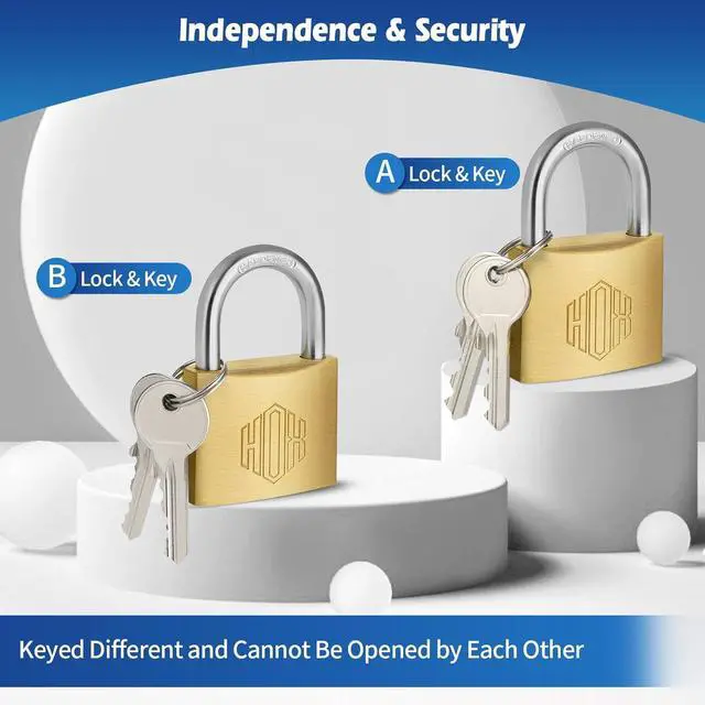 Unique Keyed Design: Every lock in the set features a distinct key, enhancing personal security by ensuring no two locks can be opened with the same key.