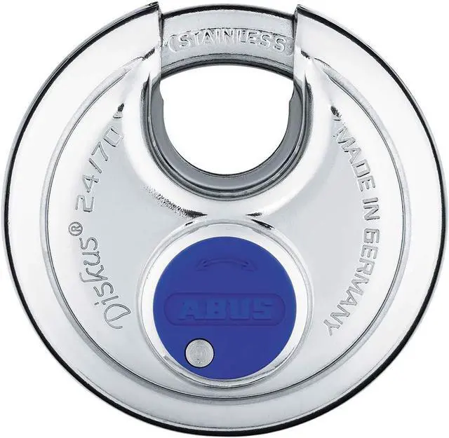 The disc lock is a special form of padlock with some distinct advantages. The disc shape effectively combats the most common ways of forcing it open. The design with only a small opening in the shackle makes it very difficult to tamper with. As the ABUS Diskusis made mainly of stainless steel, it is used especially where security and protection against corrosion are required. 360-degree all-round protection. The Diskusfamily is available in models with diameters between 50 and 80 mm. The original Diskusis only available from ABUS. As a special model, the locks can be retrofitted with a disc cylinder (ABUS-Plus locking system) or cylinder pulling protection.