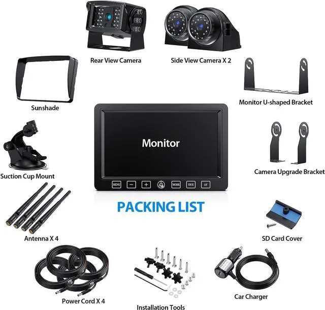 Easy Installation & Wide ApplicationWire camera to running light / tail lights/reverse lights to observe, Cigarette Lighter/ACC/Fuse/Radio can power monitor, Just connect power source and install antenna, you can start to use. Accommodate a large variety of vehicle as RV/Camper/Truck/5th Wheel Trailer/Bus/Van/Pickup.