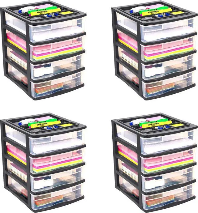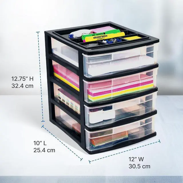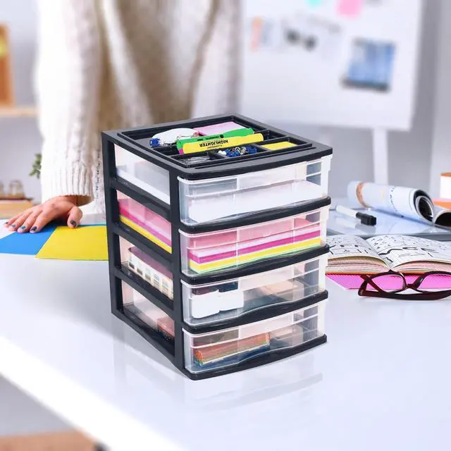 Design Features: Smooth-gliding drawers with handles provide quick opening and ease of use to access your supplies; Clear drawers allow you to effortlessly view items inside