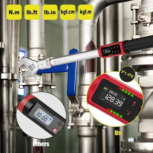 Colorful Screen DisplayThis electric torque wrench has a clear display, the screen shows different colors, the data is clear at a glance, and it is easier to read. In addition, this electric torque wrench provides 9 groups of preset values from P1 to P9, so you can set up several groups of commonly used torque values in advance, which makes the operation more convenient. Moreover, this electric torque wrench can store up to 500 different data sets, which is a large storage capacity that makes you fearless of data loss.