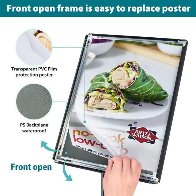 • EASY TO CHANGE MESSAGE - The poster sign stand frame has neat pop-open edges,you only need to flip the edges outward, replace the poster is a breeze, display 11" x 17" size paper.