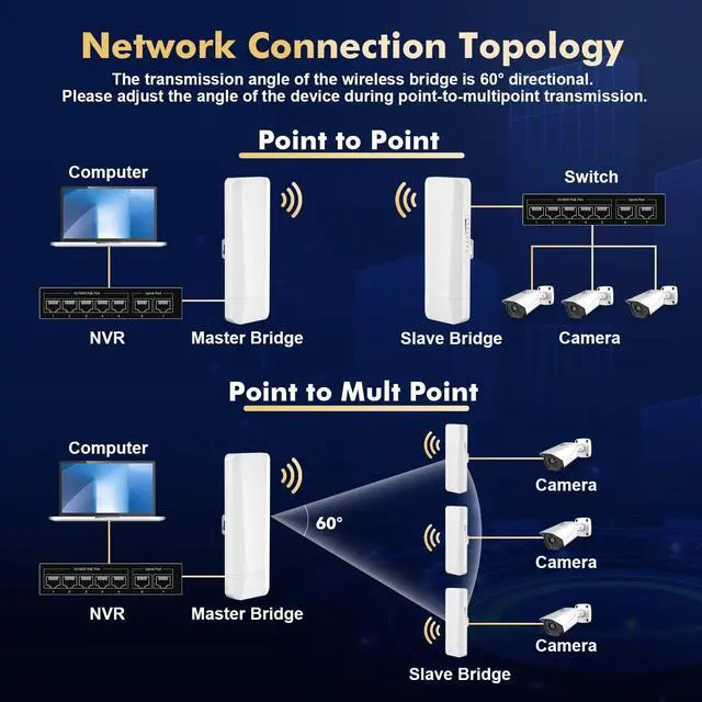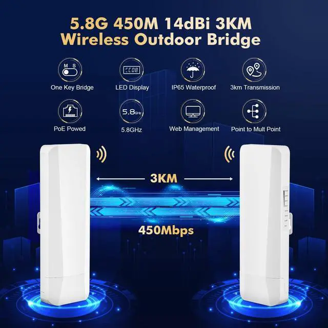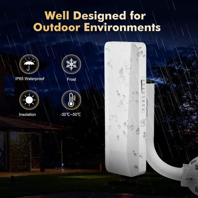 PtP & PtMPWaterproof design, suitable for outdoor, extend ethernet distance wirelessly, support ptp and ptmp connection, also supports single independent use for wifi access (default password 88888888)