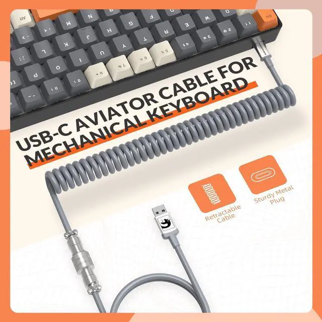 High Quality Type C to USB A Spiral CableComes with stylish and customizable double sleeve coiled keyboard cable, flexible metal aviation connector, easy to swap, spring cable with good rebound performance, ensure a fast data transmission, keep your table neat and clean with long extendable length, provide a cool addition upgrade your keyboard look and desktop setup,can be compatible with most USB C mechanical gaming keyboards or printer, PS4, Switch game console.