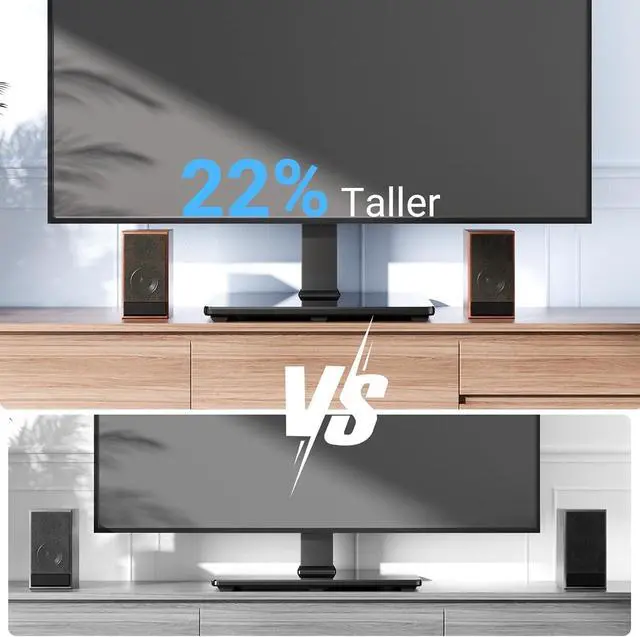 Problem Solver The distance between the legs of two-legged TV stands is too large, which requires a longer entertainment center. Center TV stand-Your NO.1 Mounting Solution Provider! Allows you to purchase a narrow TV cabinet and save space. Besides, we have the most considerate after-sale service which will help you dealing with any problem, one call is all it takes.