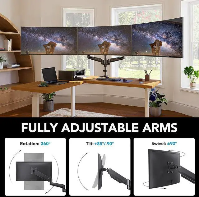 Increase Comfort & Efficiency - Complete your work in 3 monitors at the same times with comfortable view position. Now you can enhance your work efficiency in comfortable work posture.