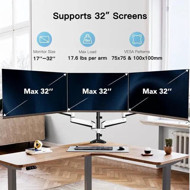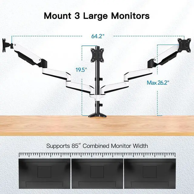 Increase Comfort &Efficiency - Complete your work in 3 monitors at the same times with comfortable view position. Now you can enhance your work efficiency in comfortable work posture.